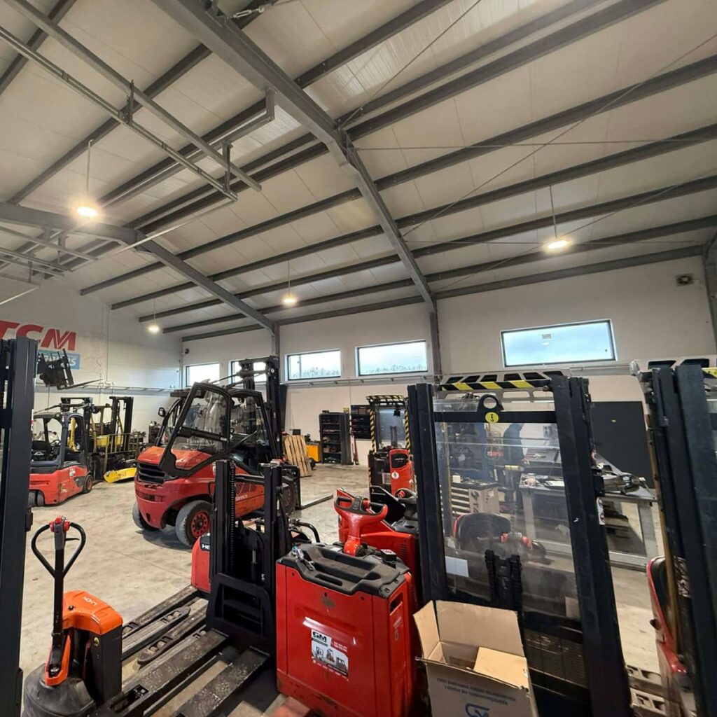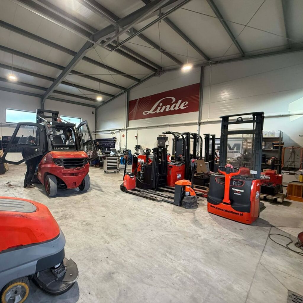 Nasza nowa lokalizacja przy ul. Wierzbowa 35C, 18-106 Zalesiany to nowoczesna hala serwisowa i sprzedażowa, zaprojektowana tak, aby zapewnić najwyższy komfort obsługi Klientów oraz sprawny przebieg prac serwisowych i naprawczych. Dzięki przestronnej powierzchni i profesjonalnemu wyposażeniu nasi technicy mają dostęp do wszystkich niezbędnych narzędzi i urządzeń, co pozwala na szybkie i bezpieczne wykonywanie napraw oraz przeglądów wózków widłowych, ładowarek i paleciaków.